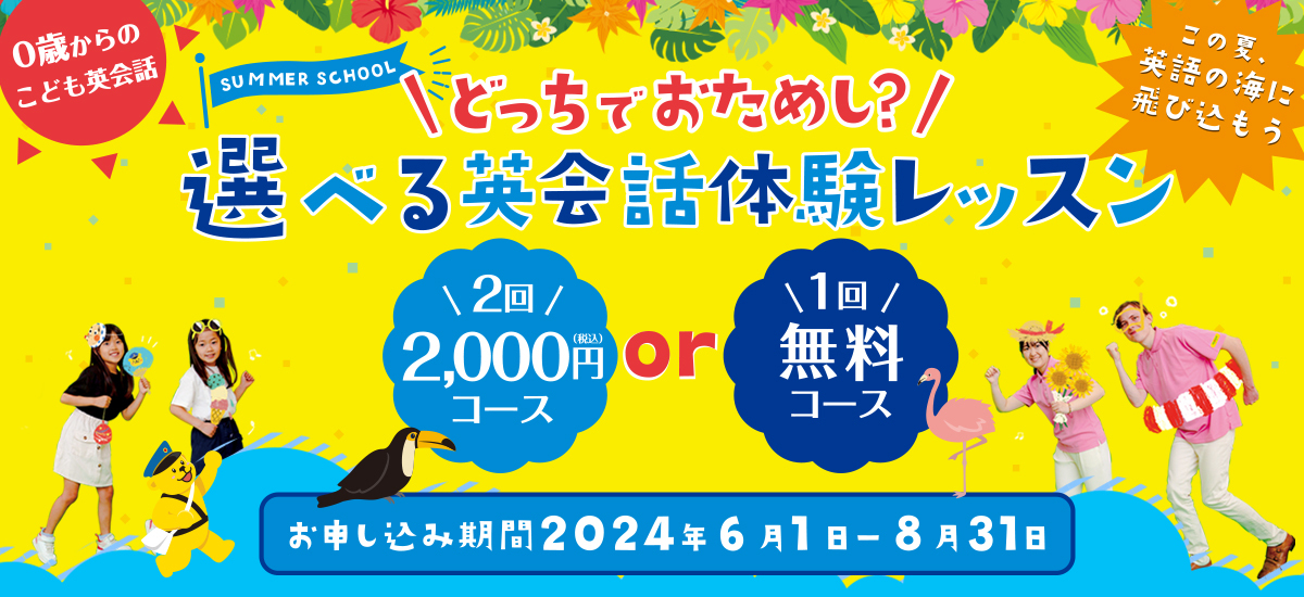 選べる英会話体験レッスン。2回2,000円(税込)コースor1回無料コース