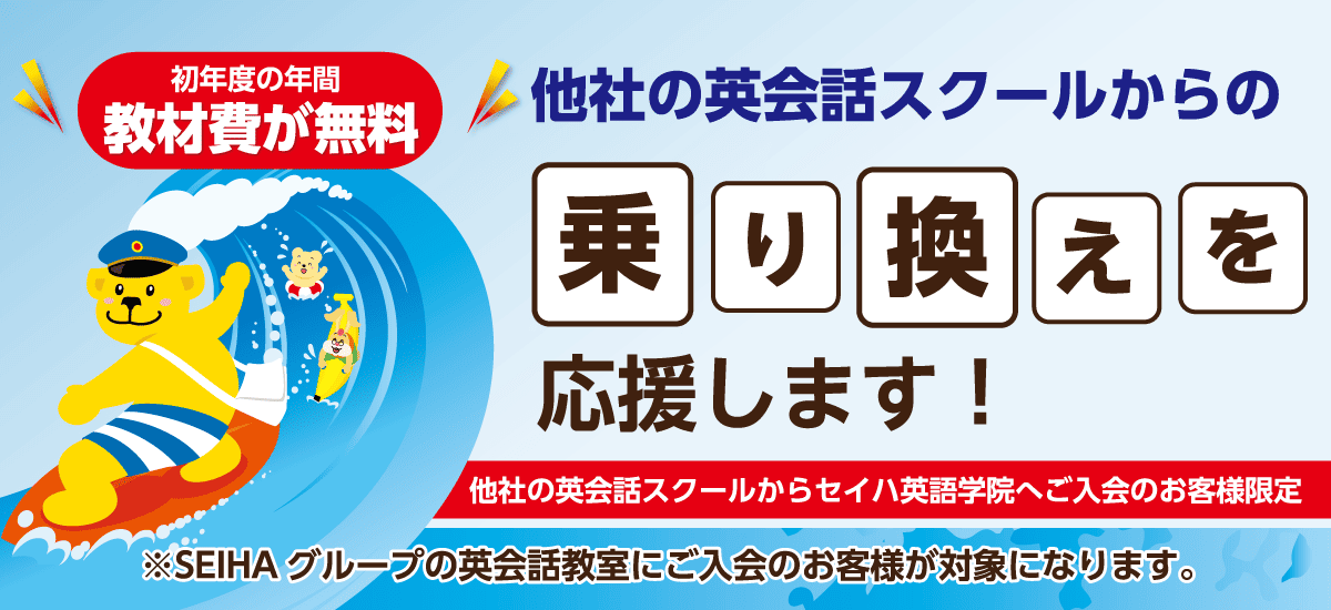 他スクールからの乗り換え応援します!今なら、初年度教材費無料にて、ご入会いただけます。