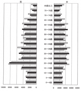 平成22年の全国平均が23.0%ですから、驚異的に若い人が多い街と言えますね。