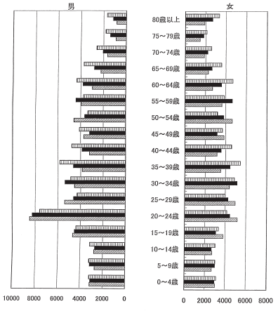 △滋賀県草津市人口ピラミッド(草津市ホームページより)