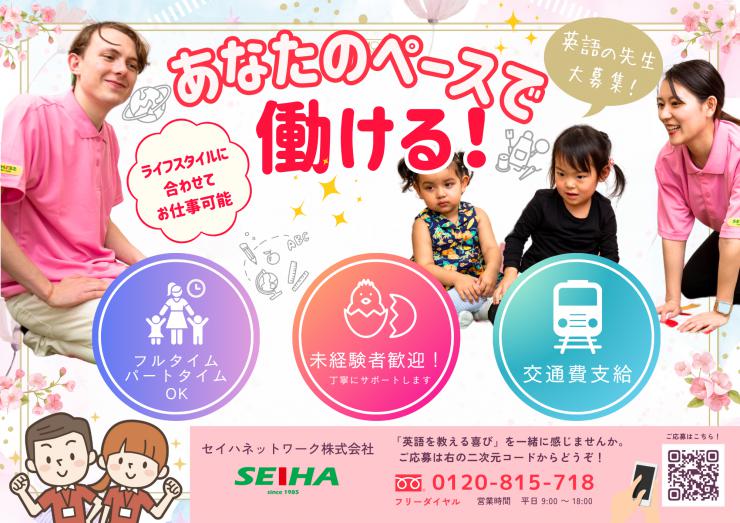 外国人講師と英語でコミュニケーションがとれる方 英語が好きな方であれば大歓迎 ◎研修体制充実◎ ブランクあり、英会話指導が初めての方も安心してお仕事スタート! 英語の先生デビューをセイハがサポートします♪ |